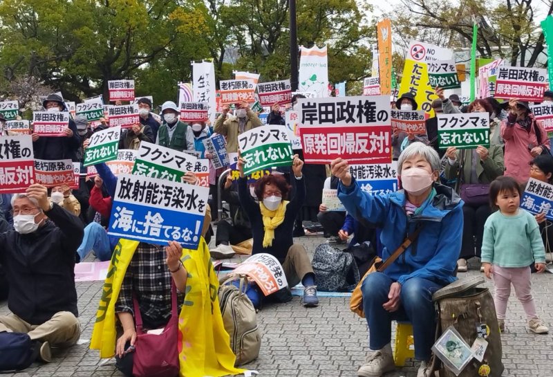岸田首相の原発推進政策に抗議する集会とデモが3月21日、代々木公園でおこなわれ、4700人が参加しました。主催は、「さようなら原発」一千万署名市民の会。汚染水の放出に反対している福島からの参加者は「原発回帰を進める岸田首相はフクシマをなかったことにしようとしており、絶対に許すことはできない」と厳しく批判しました。