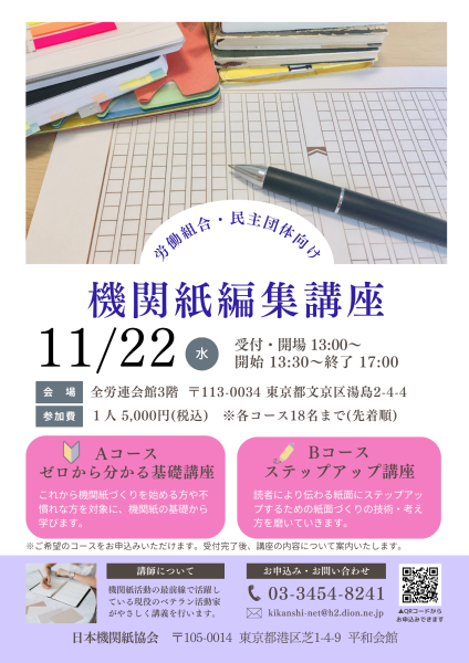 【11月22日】機関紙編集講座を開催します