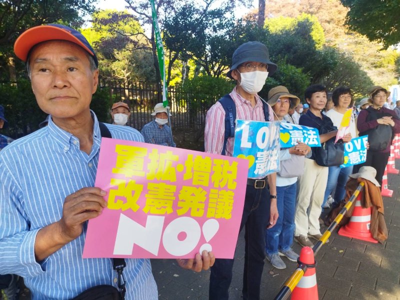 憲法公布から77年目の11月3日、国会正門前で憲法大行動が取り組まれ、約4000人が参加しました。総がかり行動実行委員会と9条改憲NO!全国市民アクションが主催しました。立憲、共産、社民、れいわ、沖縄の風の国会議員らがあいさつしました。岸田政権の大軍拡を止めること、イスラエルによるガザ攻撃をやめさせることなどを訴えました。